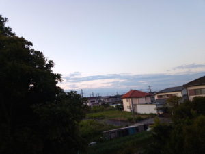 5時半、朝日は蜜柑色の光となり、お隣の屋根を照らしています。我が家の物干しに陽が回って来るのは後2時間半くらい掛かるかなぁ。
