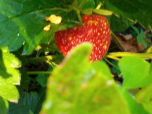 右: 露地苺ですよ~!ダンゴムシに食べられない内に収穫します。