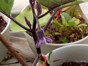 此方が千両二号茄子ですね。昨日見えなかった花がポン!と出て来ました。ポン!と出て来る訳はありませんが、小さな花芽の存在でした。日一日と変化して行き、見る人に元気を呉れます。それが人々が家庭菜園をする大きな魅力です。
