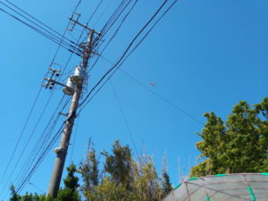 農道の電線に並んだ燕が可愛かったので、物干しから撮ろうと思ったら、丁度濃い背景と重なって撮れませんでした。慌てて玄関前から撮ろうと思ったら、燕は何処へ行ってしまったのか、影も姿もありませんでした。