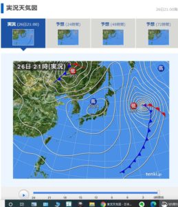 最低気温は天気jpでは7.0度!最高気温は18度まで上がるけれど、午前中は曇り勝ちだ。北東の風3―5m。これはソラマドだが、この町の風力については天気jpはもとより、最近はソラマドも信用していない。10日間天気予報では、29日の天候の崩れは台風2号崩れの温帯低気圧だ、と思い込んでいたが、実はそうではない事が分かった。