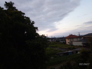 7度と知って、急いで物干しのトマトたちを確認。フ~ッ!大丈夫だ。千両二号茄子は葉をピンと立て気味だ。米茄子は比較的開いている。天気予報で発表はないけれど、この時期、日本の上空には冷たい空気が流れ込んでいるんだ。廊下に避難させた胡瓜、茄子は最後に定植するグループになるだろう。一番先はミニトマトかな。そして、大玉トマトかな。