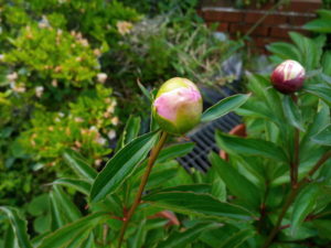 今朝の芍薬の蕾、ワクワク!また一歩花色が分かる様になっています。