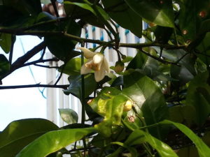 夏蜜柑の花が物干しから見ても一目で分かる様になりました。蕾の直径5mmと言う処かしらね。