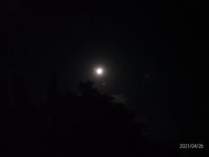 昨夜の満月です。庭がとても明るかったです。右が4.0倍。