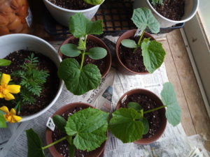 中: 廊下に避難した胡瓜。