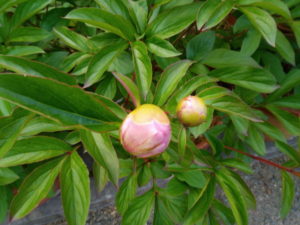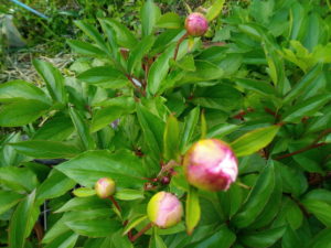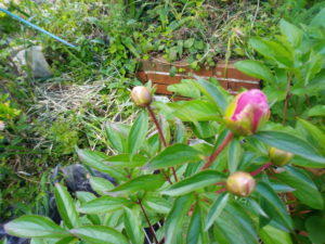 今朝の芍薬の蕾、ワクワク!また一歩花色が分かる様になっています。
