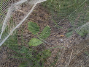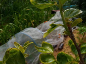 左: 庭に定植した南瓜の本葉が大きくなりました。