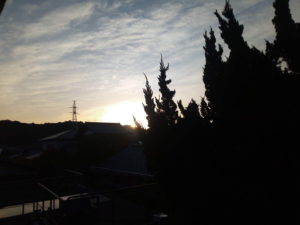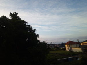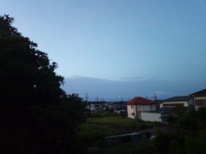 朝の気温が安定して来ましたね。今朝は最低気温が16度、最高気温23度で、日中は南西の風7mです。写真は4時29分に撮りました。