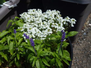 左: スイートアリッサムと一緒に写っているのはサルビアストラータです。紫色は退いてしまいますね。
