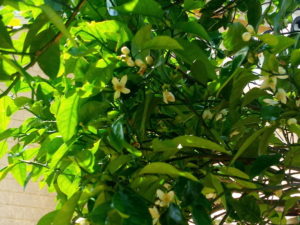 左: 夏蜜柑の花は葉裏から見るとよく分かります。