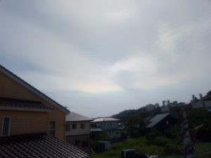 風が非常に強いです。7mどころじゃぁ無いですね。西南西に彩雲が出ました。スマホに写るか不安でしたが、ハッキリ出ましたね。