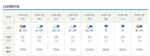 10日間天気予報はショックですよ。明日、明後日は晴れますが、その後は7日間雨マークが何処かについて居ます。