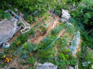 庭は未だ4時45分には濡れた感じがありませんでした。4畝の南端には昨日植えたジニアの白が目だって居ます。ようやくなんか植えたらしい感じになりました。その手前は最近不織布を外しましたが、五郎島金時が眠っています。昨日調べたら根が出始めていました。