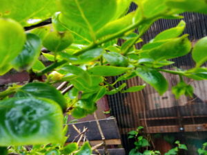 右: 夏蜜柑に小さな実が出来て来ました。丈夫に育て!