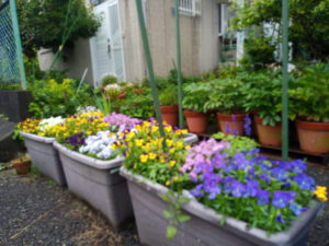 昨日キャッチの写真の時、雨が強かったので、見に行けなかった西隣さんの落花生を見に行って来ました。無事でした。良かった。あの烏たちはここで落花生を人が育てることを知っているから要注意ですね。外は小雨が降っていました。ビオラを刈り、少し風通しを良くしました。間もなく芋の挿し穂が届くかも知れないので、取り敢えずした1/3を残して花を刈り取りました。ラベンダーも鉢植えの方は刈り取りました。