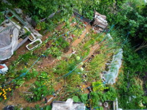 そろそろ芋の挿し穂が届くかなぁ、と期待しつつビオラの花をチョキチョキと株の下1/3だけ残して刈り取りました。残渣はそのままです。2―3日晴れの日が有れば小さく乾いた有機物になります。不耕起プランターだから、もしかすると7月辺りに小さな苗が見られるかなぁ。出て来たら、ポリポットで育てましょう。