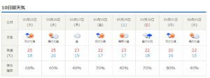 10日間天気予報は昨日より晴れマークが増えましたね。