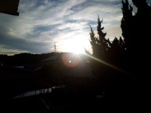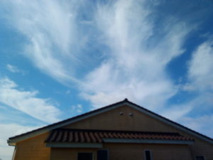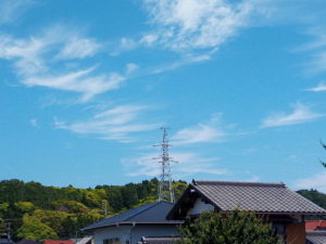 朝の内はこんなに綺麗な空でしたが、徐々に雲が広がり、薄曇りになって来ました。途中、これは2―3日内にに天気が有れるな、という雲が出ていました。木曜日の雨は荒れるかも知れませんよ。お買い物は明日中に済ませましょう。