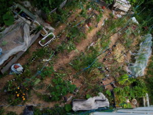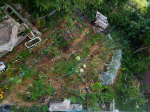 少し暗くなりかけた庭ですが、玉葱の残渣は全てトマトの苗の近くに置きました。