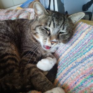 12時、うめに『オカアシャン、寝ちゃダメ、ちゅ~るの時間なのに~!』、と言いながら、肉球でそっと顔を触ります。