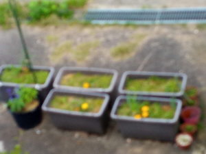 左: 焦点呆けで失礼!これは昨日の朝、ビオラの残渣が乾いて大分嵩が減って来たプランターです。マリゴールドがくっきりとして来ました。