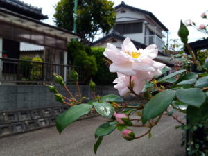 中: ご近所の蔓バラです。