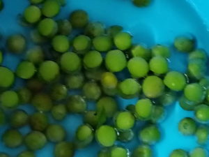 煮沸消毒をしている間、玄関前の枝の青梅を取り、盥に水を張って浸しました。24時間浸します。明日の午後か明後日の午後にジャムかシロップにします。