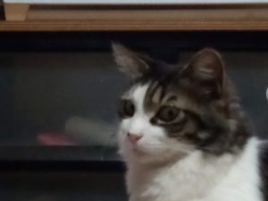 今日は18時半で、福が居てうめも居ます。トラ子は先程、私のお刺身を食べて出掛けて行きました。本当にお魚大好き猫です。