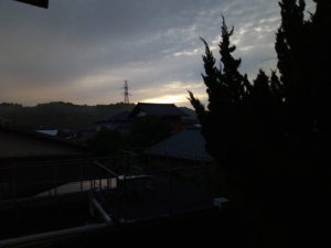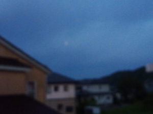 左: 今日は不燃ゴミの日。ゴミを美化ステーションに出しに行った後の東の空です。