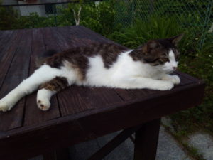 4時半、トラ子に次いで、うめが戻って来ました。5時前、福が『お隣に行ってきま~す!』、と玄関から堂々と出て行きました(笑)。トラ子とうめは二階で休んでいます。