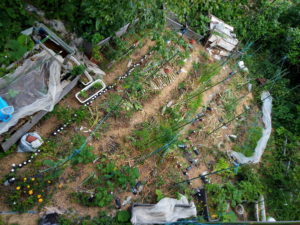 玉葱の茎葉を茄子の根元にも置きました。もっともっと刈草が必要ですね。今の内に集めて畝に敷いて行きましょう。