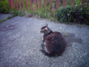 赤い光は真北までずっと広がっていました。南西にも届いた光。東だけは染まっていませんでしたね。トラちゃんの横にしゃがんで、少し寄ったら、ん!?大丈夫そう!『さっき魚貰ったから、邪見に出来ないニャん。』、と表で触らせて呉れたのは何回目?多分3回目位(笑)。自分から顔を摺りつけて来ました。指に魚の煮汁の匂いが付いて居たかな?一寸、お・ど・ろ・きでした。