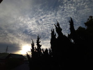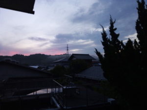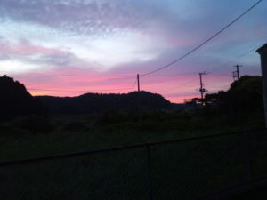 左: 今日は不燃ゴミの日。ゴミを美化ステーションに出しに行った後の東の空です。