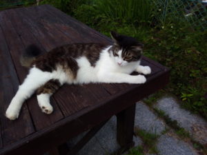 4時半、トラ子に次いで、うめが戻って来ました。5時前、福が『お隣に行ってきま~す!』、と玄関から堂々と出て行きました(笑)。トラ子とうめは二階で休んでいます。