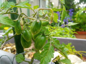 アプローチのキャンディドロップです。左は生長点近くの花房で、右は第一段目の実です。