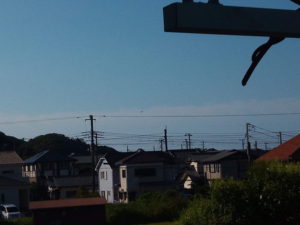 電線の直ぐ上の処まで出来た白い雲の壁です。見えますか?