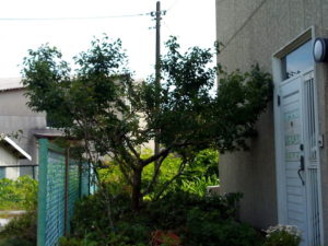 右: 向こうが透けて見える様になった実梅の樹。細かい処はこれから少しずつやって行きます。でもね、梅の樹は生きているから、切った処が伸びはじめます(笑)