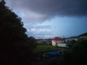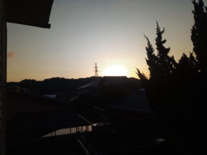 現在は16度位、これが最低気温で最高気温は24度まで上がりそうです。晴れですが、東の風…この町では雨を呼ぶ方角です…が2―4mで、後に南東に変ります。明日は一日中雨ですね。風も強くなりそうです。