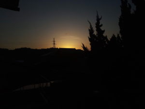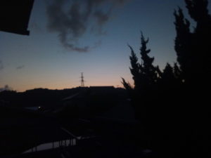 4時12分頃の空です。右は電線に留る猛禽がとても大きく見えたのですが、いつもの司令塔烏でした。この後で別の烏が我が家の屋根でホップ・ステップ・ジャンプをしていました。今日は『煩いよ!』、と言わずに置きました。なんかその反応を知能犯(愉快犯)は狙っているのでは、と思えたので。