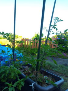 右: トマト、キャンディドロップは6段目の花が咲いています。下3段に実が着いています~♪。