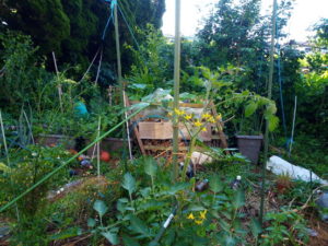 物干しにそろそろ洗濯ものハンガーを出すかな!?物干しの老化苗のトマトも植えて上げよう。今朝も庭のキャンディドロップの脇芽をその辺に挿して来ました。やはり、プランターの土より湿度は高いみたいで良く着きます。