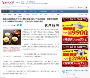 お茶に含まれるカテキン類に新型コロナ不活化効果 京都府立医科大学と伊藤園が共同研究 試験管内の実験で確認。詳しくは飛んでみてね~!