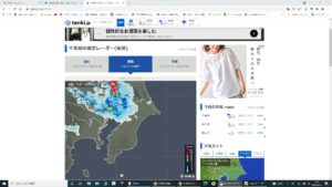 多分、写真に出た北の黒い雲はこの夕立雲ですね。一部赤く表示された激しい雨が降っているようです。