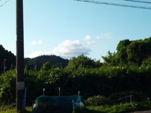 左: 買物に行く途中で見上げた青空は夏休みの空ですよ。