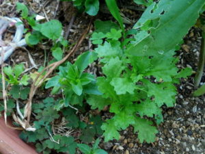 左: ノースポールの零れ種が発芽です。大丈夫なの?