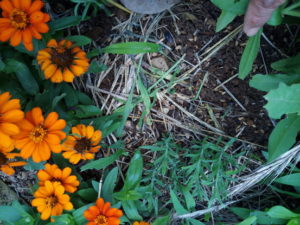 此方は4畝の南側のラベンダーです。少し遅れて手入れをしたので、新芽が確りと出た、とは…言えないかな。旺盛なジニアに押され気味です。