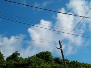 左: 買物に行く途中で見上げた青空は夏休みの空ですよ。