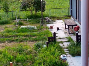 お隣のサクラさんが凄い抜け毛が表面に絡んでいましたので、バスターズを持って行ってブラッシングして来ました。抜け毛はキョン予防に家の裏に撒きました。