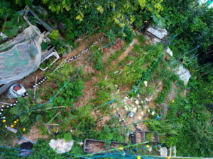 5時の庭です。二階から見ていると分かりませんが、通路のイネ科の草は既に想像以上に伸びています。今の時期、定期的に雨が来ますから、植物の生長は凄まじいです。